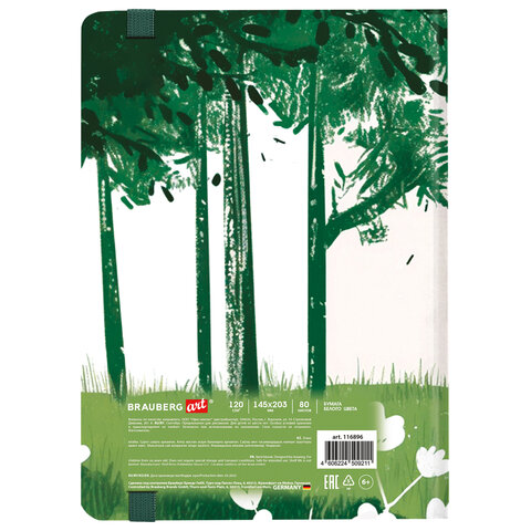 Скетчбук, белая бумага 120 г/м2, 145х203 мм, 80 л., резинка, твердый, BRAUBERG ART, "Прогулка", 116896
