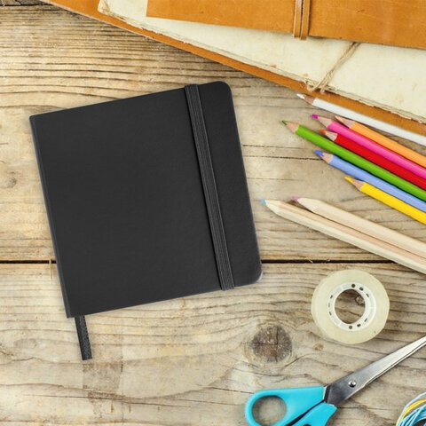 Скетчбук, белая бумага 140 г/м2 120х120 мм, 80 л., КОЖЗАМ, резинка, BRAUBERG ART CLASSIC, черный, 113181