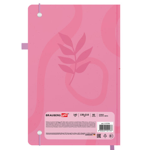 Скетчбук, белая бумага 140 г/м2, 130х210 мм, 80 л., софт-тач, резинка, BRAUBERG ART CLASSIC, "Pink mood", 117779