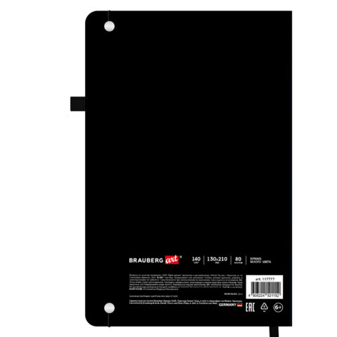 Скетчбук, белая бумага 140 г/м2, 130х210 мм, 80 л., софт-тач, резинка, BRAUBERG ART CLASSIC, "Секрет", 117777