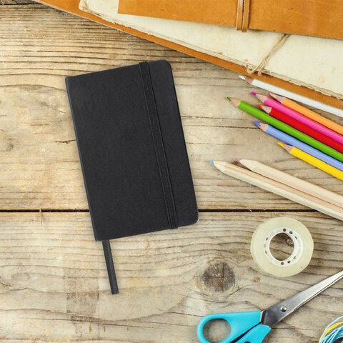 Скетчбук, белая бумага 140 г/м2 90х140 мм, 80 л., КОЖЗАМ, резинка, BRAUBERG ART CLASSIC, черный, 113180