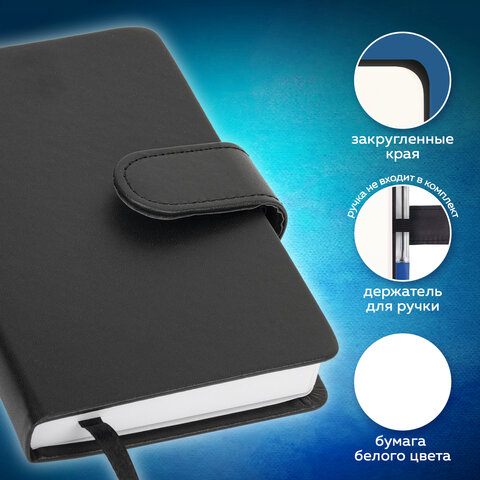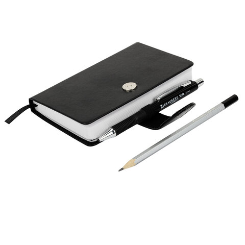 Скетчбук, белая бумага 140 г/м2 90х140 мм, 80 л., КОЖЗАМ, застежка, BRAUBERG ART CLASSIC, черный, 116459