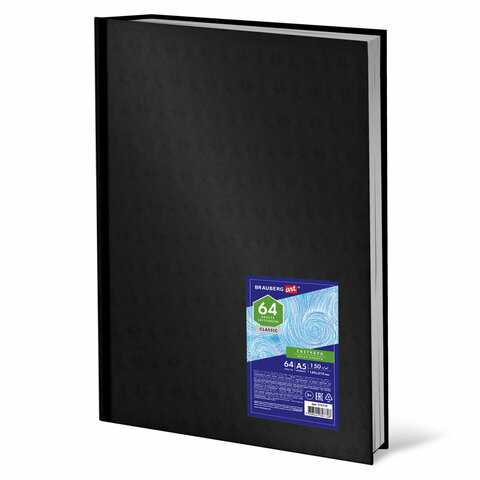 Скетчбук, белая бумага 150 г/м2, 148х210 мм, 64 л., книжный твердый переплет, BRAUBERG ART CLASSIC, 115110