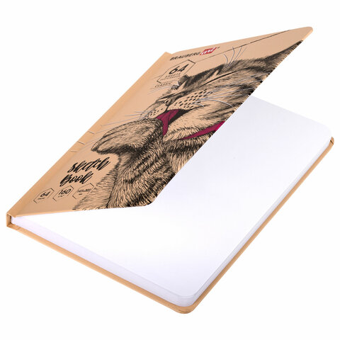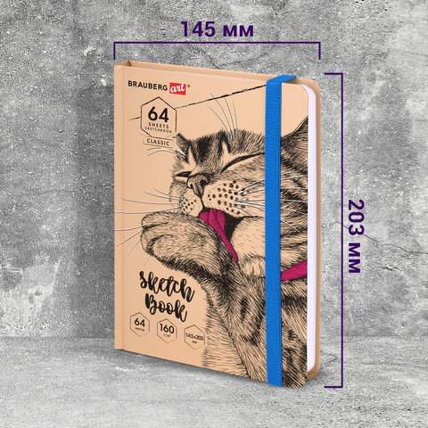 Скетчбук, белая бумага 160 г/м, 145х203 мм, 64 л., резинка, твердый, BRAUBERG ART CLASSIC "Это Кот", 114589