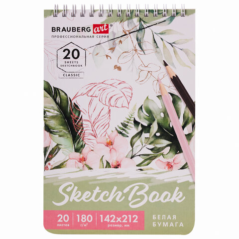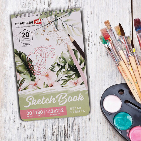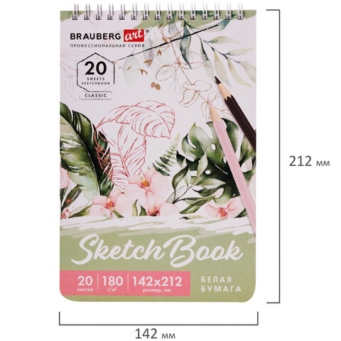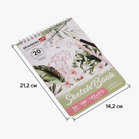 Скетчбук, белая бумага 180 г/м2, 142х212 мм, 20 л., гребень, твердая обложка, BRAUBERG ART CLASSIC, 112992