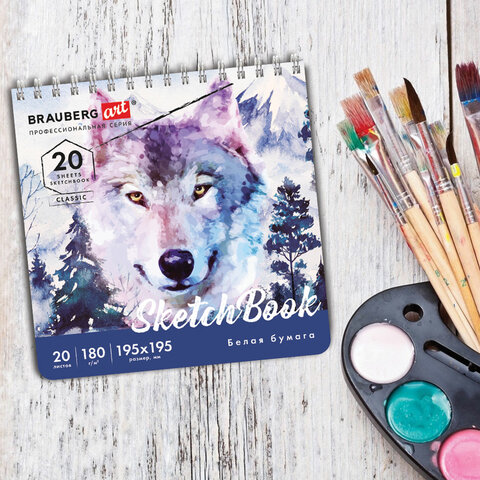 Скетчбук, белая бумага 180 г/м2, 195х195 мм, 20 л., гребень, твердая обложка, BRAUBERG ART CLASSIC, 112994