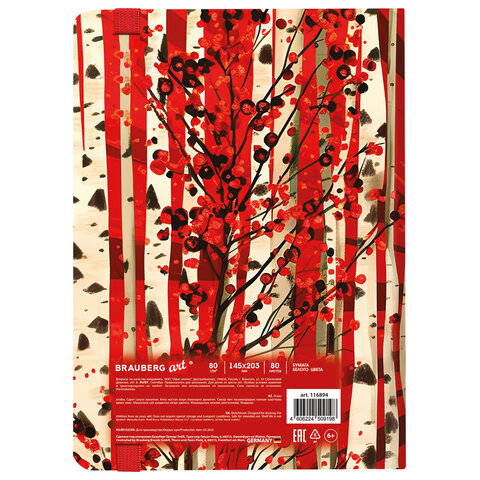 Скетчбук, белая бумага 80 г/м2, 145х203 мм, 80 л., резинка, твердый, BRAUBERG ART, "Russia", 116894