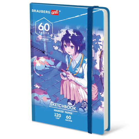 Скетчбук для маркеров 120 г/м2, 148х210 мм, 60 л., твердая обложка, резинка, BRAUBERG ART PREMIERE, МИКС, 115103