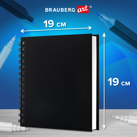 Скетчбук для маркеров, бумага ВХИ ГОЗНАК 200 г/м2 190х190 мм, 40 л., гребень, твёрдая обложка, ЧЕРНЫЙ, BRAUBERG ART CLASSIC, 115081