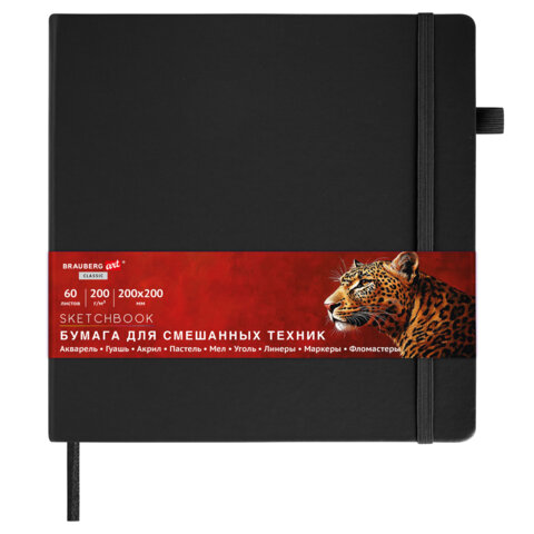 Скетчбук для смешанных техник MixMedia, 200 г/м2, 200х200 мм, 60 л., КОЖЗАМ, резинка, BRAUBERG ART CLASSIC, 116970