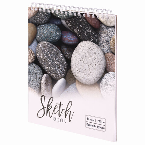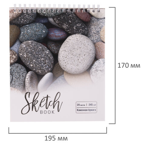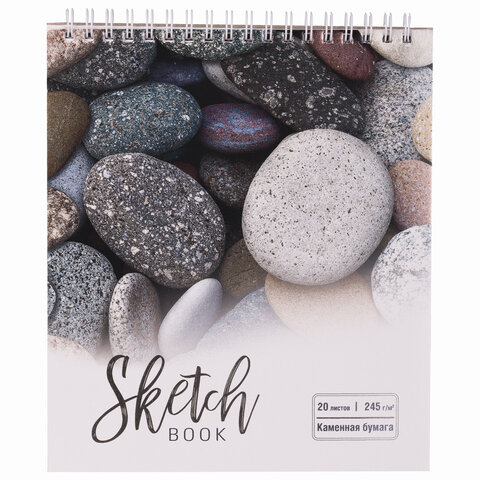 Скетчбук, каменная бумага 245 г/м2, 170х195 мм, 20 л., гребень, подложка, холодная фольга, "Камни", 98610