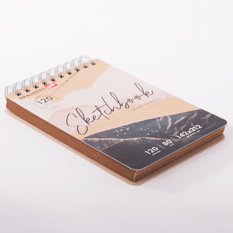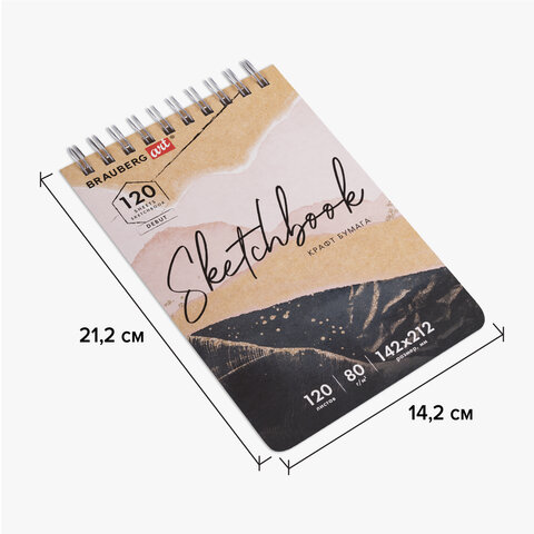 Скетчбук, крафт-бумага 80 г/м2, 142х212 мм, 120 л., гребень, твердая обложка, BRAUBERG ART DEBUT, 112998