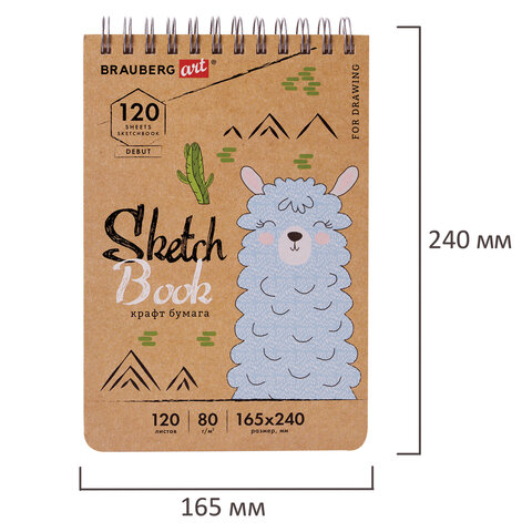 Скетчбук, крафт-бумага 80 г/м2, 165х240 мм, 120 л., гребень, твердая обложка, BRAUBERG ART DEBUT, 112999