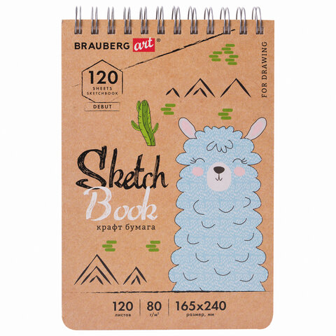 Скетчбук BRAUBERG ART "DEBUT" для эскизов и графики. Внутренний блок - специальная художественная гладкая крафт-бумага коричневого оттенка. Подходит для работы с широким спектром графических материалов (уголь, соусы, карандаши и прочие).