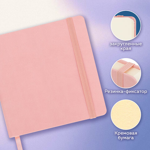 Скетчбук, слоновая кость 140 г/м2 120х120 мм, 80 л., КОЖЗАМ, резинка, BRAUBERG ART CLASSIC, пастель розовый, 116876
