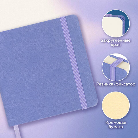 Скетчбук, слоновая кость 140 г/м2 120х120 мм, 80 л., КОЖЗАМ, резинка, BRAUBERG ART CLASSIC, пастель сиреневый, 116877