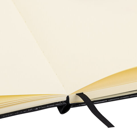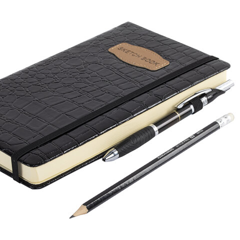 Скетчбук, слоновая кость 140 г/м2, 130х210 мм, 80 л., КОЖЗАМ, резинка, BRAUBERG ART CLASSIC, CROCO, черный, 116470