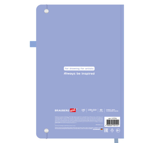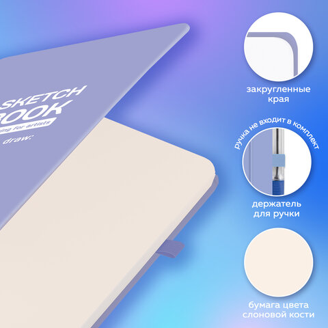 Скетчбук, слоновая кость 140 г/м2, 130х210 мм, 80 л., софт-тач, резинка, BRAUBERG ART CLASSIC, "For artists", 117774