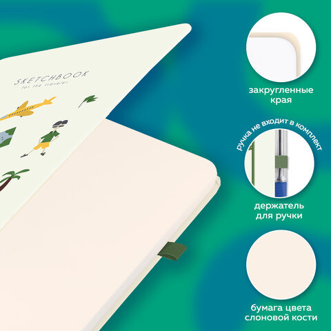 Скетчбук, слоновая кость 140 г/м2, 130х210 мм, 80 л., софт-тач, резинка, BRAUBERG ART CLASSIC, "Traveler", 117775