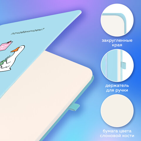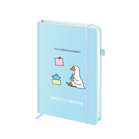 Скетчбук, слоновая кость 140 г/м2, 130х210 мм, 80 л., софт-тач, резинка, BRAUBERG ART CLASSIC, "Милый гусь", 116469