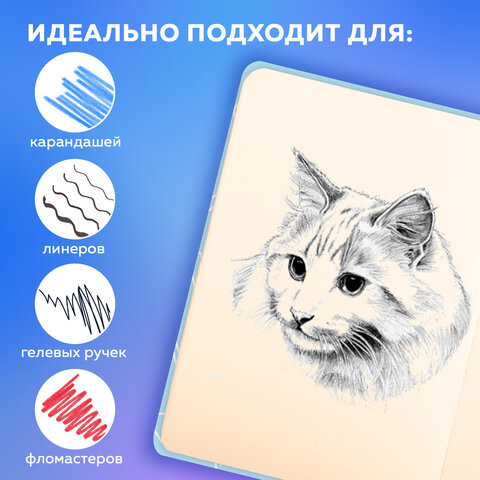 Скетчбук BRAUBERG ART "CLASSIC" подходит для эскизов, графики, набросков, каллиграфии, леттеринга, скетчинга и ведения записей. Это компактный скетчбук с жесткой обложкой, покрытой матовой пленкой soft-touch.