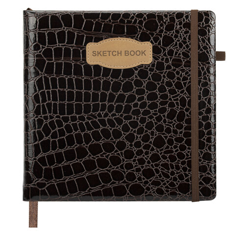 Скетчбук, слоновая кость 140 г/м2, 200х200 мм, 80 л., КОЖЗАМ, резинка, BRAUBERG ART CLASSIC, CROCO, коричневый, 116473