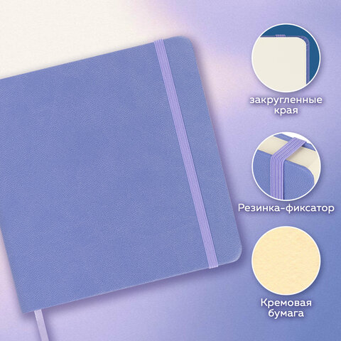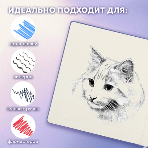 Скетчбук, слоновая кость 140 г/м2 200х200 мм, 80 л., КОЖЗАМ, резинка, BRAUBERG ART CLASSIC, пастель сиреневый, 116881