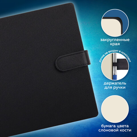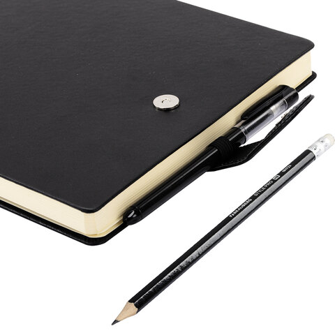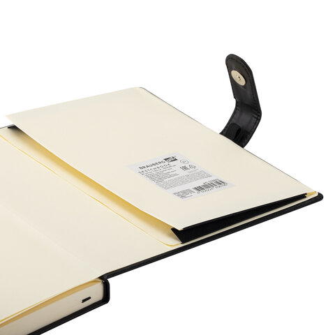 Скетчбук, слоновая кость 140 г/м2, 200х200 мм, 80 л., КОЖЗАМ, застежка, BRAUBERG ART CLASSIC, черный, 116462