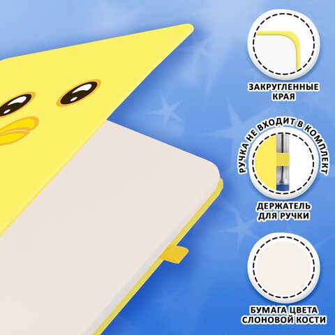 Скетчбук, слоновая кость 140 г/м2, 130х210 мм, 80 л., софт-тач, резинка, наклейки, FUNSTER (ФАНСТЕР), "Duck", 117786
