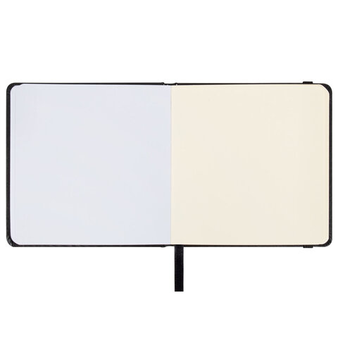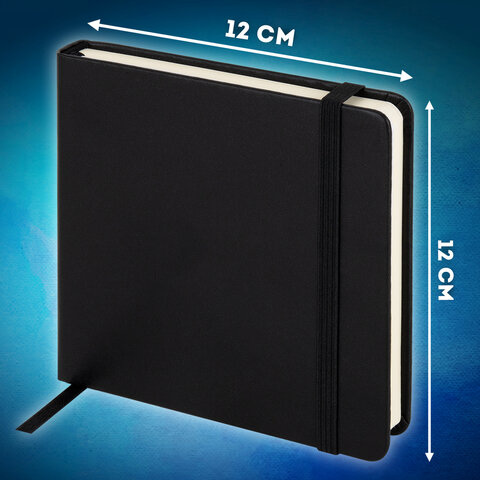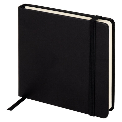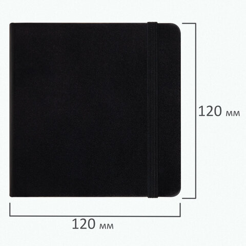 Скетчбук, слоновая кость+белая 140 г/м2, 120х120 мм, 80 л., КОЖЗАМ, резинка, BRAUBERG ART CLASSIC, черный, 116872