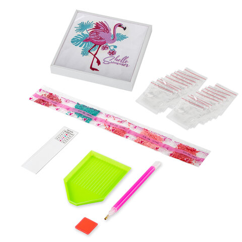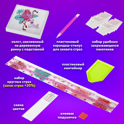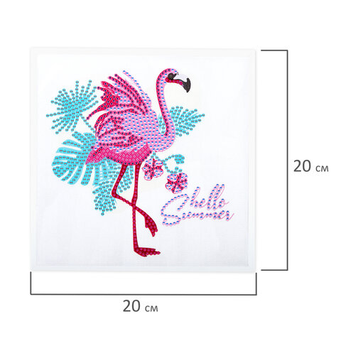 Картина стразами (алмазная мозаика) 20х20 см, ЮНЛАНДИЯ "Фламинго", в деревянной рамке, 662438