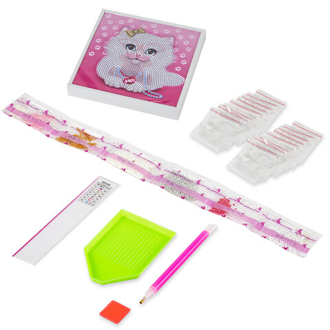 Картина стразами (алмазная мозаика) 20х20 см, ЮНЛАНДИЯ "Котёнок", в деревянной рамке, 662440