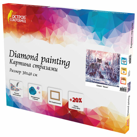 Картина стразами (алмазная мозаика) 30х40 см, ОСТРОВ СОКРОВИЩ "Волки", на подрамнике, 662423