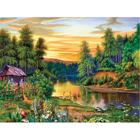 Картина стразами (алмазная мозаика) 40х50 см, ОСТРОВ СОКРОВИЩ "Домик в лесу", без подрамника, 662417