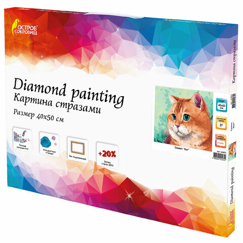 Картина стразами (алмазная мозаика), 40х50 см, ОСТРОВ СОКРОВИЩ "Кот", на подрамнике, 663873