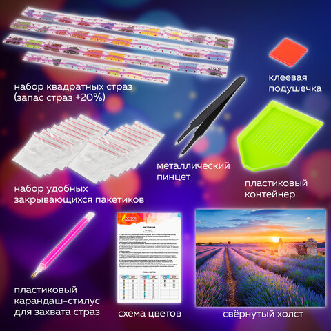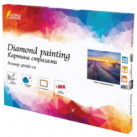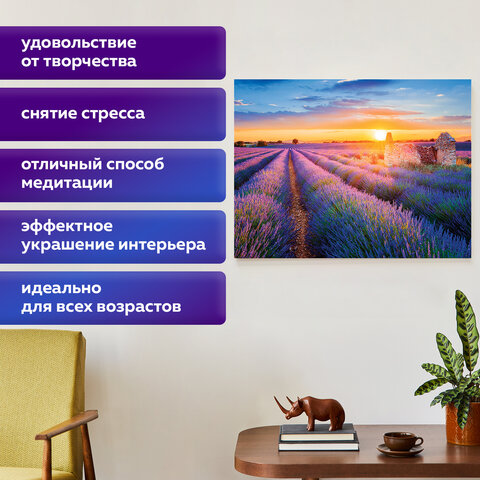 Картина стразами (алмазная мозаика) 40х50 см, ОСТРОВ СОКРОВИЩ "Лавандовое поле", на подрамнике, 662426