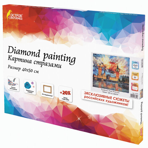 Картина стразами (алмазная мозаика) 40х50 см, ОСТРОВ СОКРОВИЩ "Небо Лондона", на подрамнике, 662592