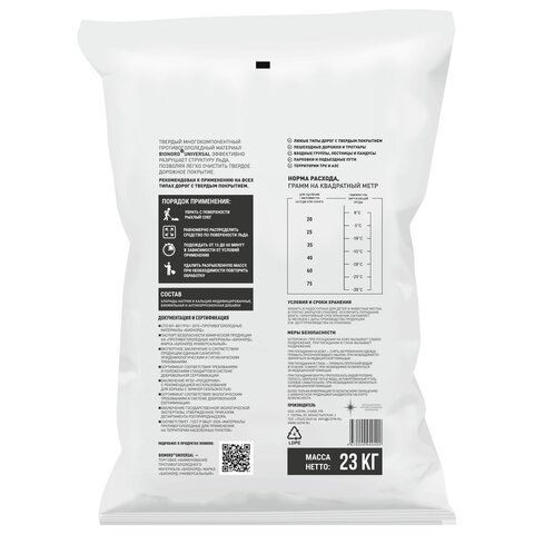 Реагент антигололедный 23 кг, BIONORD Universal, до -30 °С, хлорид кальция, мешок, МИНПРОМТОРГ
