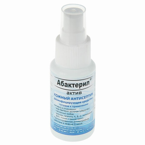 Антисептик для рук и поверхностей спиртосодержащий (64%) с распылителем 50 мл АБАКТЕРИЛ-АКТИВ, дезинфицирующий, жидкость, АА-210