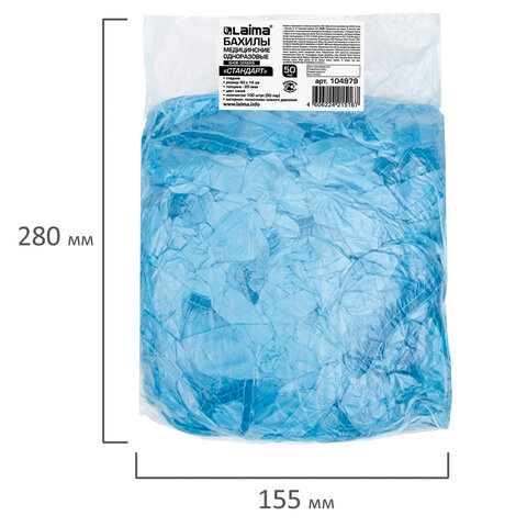 Бахилы КОМПЛЕКТ 100 шт. (50 пар) в упаковке, СТАНДАРТ, размер 40х14 см, 2,8 г, ПНД, LAIMA, 104979