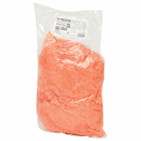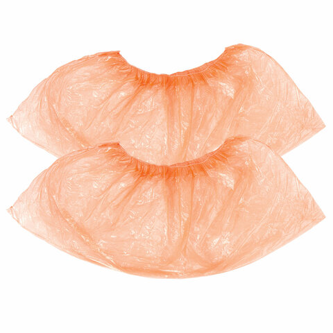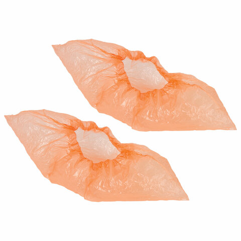 Бахилы КОМПЛЕКТ 100 штук (50 пар), ДЕТСКИЕ, размер 30х12 см, 2 г, ПНД, оранжевые, LAIMA, 104983