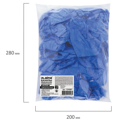 Бахилы КОМПЛЕКТ 30 штук (15 пар), СВЕРХПРОЧНЫЕ, двойная резинка, 40х14 см, 100 мкм, 10 г, LAIMA, 104981