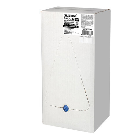 Бахилы КОМПЛЕКТ 600 шт. (300 пар), СВЕРХПРОЧНЫЕ, двойная резинка, 40х14 см, 100 мкм, 10 г, LAIMA, 630719