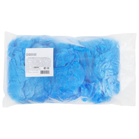 Бахилы MERIDIAN ОСОБО ПРОЧНЫЕ, 6 г, синие, двойная резинка, КОМПЛЕКТ 100 штук (50 пар), 40х15 см, 55 мкм