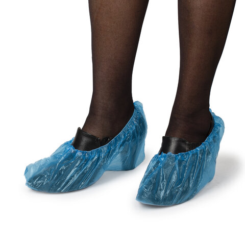 Бахилы MERIDIAN ПРОЧНЫЕ 3,8 г, синие, двойная резинка, КОМПЛЕКТ 100 штук (50 пар), 40х15 см, ПНД
