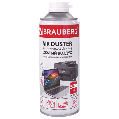 Баллон со сжатым воздухом BRAUBERG предназначен для бесконтактного удаления пыли и мелкого мусора из труднодоступных мест и внутреннего пространства компьютерной техники, аудио-, видео- и фотоаппаратуры, офисной и бытовой техники.