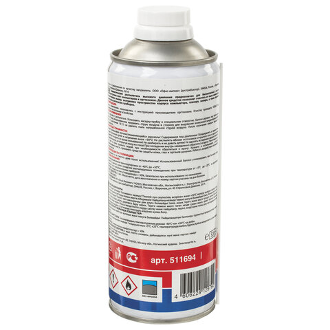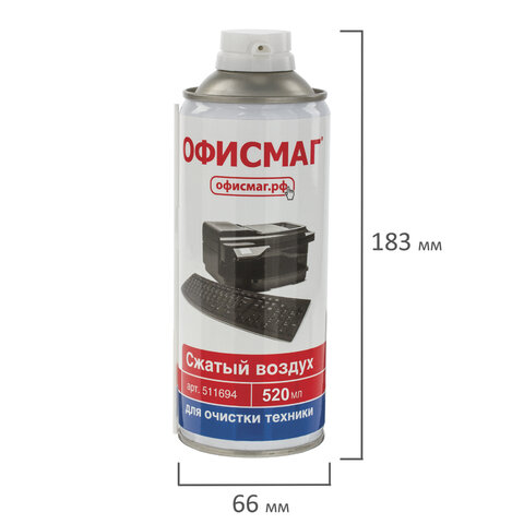 Баллон со сжатым воздухом ОФИСМАГ предназначен для бесконтактного удаления пыли и мелкого мусора из труднодоступных мест и внутреннего пространства компьютерной техники, аудио-, видео- и фотоаппаратуры, офисной и бытовой техники.