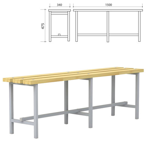 Скамья предназначена для эксплуатации в раздевалках спортивных учреждений, предприятий, офисов и т.д. Металлический каркас и доски из натуральной древесины обеспечивают надежность и долговечность конструкции. Простая сборка.