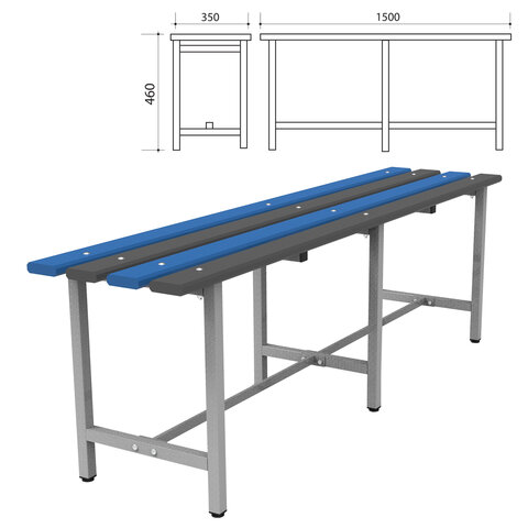 Скамья предназначена для эксплуатации в раздевалках спортивных учреждений, предприятий, офисов. Металлический каркас и пластиковая доска обеспечивают надежность и долговечность эксплуатации как в сухих, так и в помещениях с повышенной влажностью.