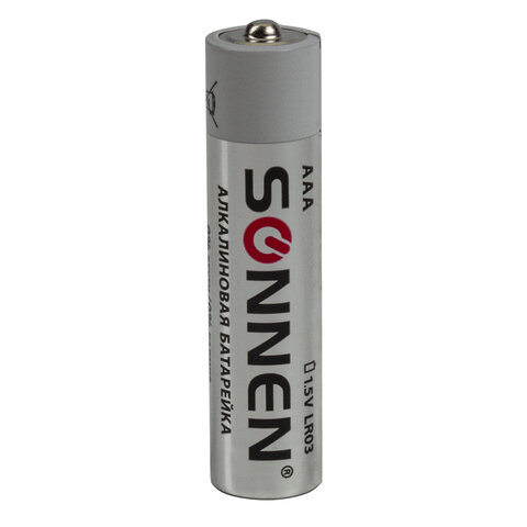 Алкалиновые батарейки SONNEN популярного типоразмера АAA идеально подходят для приборов со средним и высоким потреблением энергии. Рекомендуется использовать в фотоаппаратах, mp3-плеерах, компьютерных мышах и пультах ДУ.